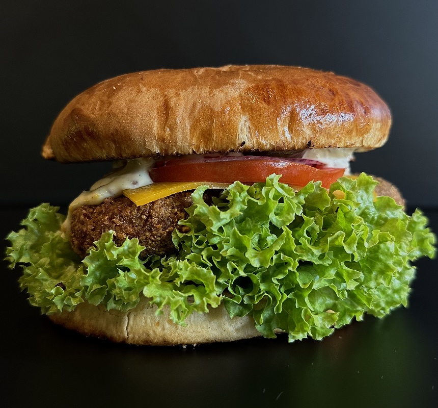 BUŁKA, 3X FALAFEL, CHEDDAR, SAŁATA, POMIDOR, CEBULA CZERWONA, OGÓREK, SOS AUTORSKI